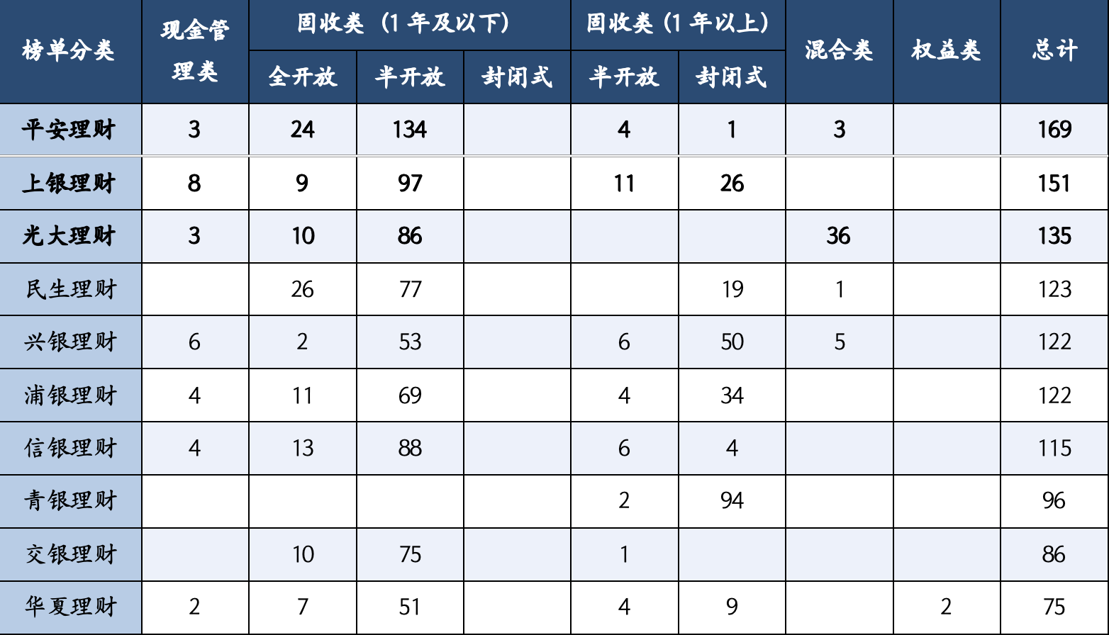 (1上榜产品是指《普益标准·银行理财产品星级综合评价3.0》方案中,产品星级评价为五星的产品。)