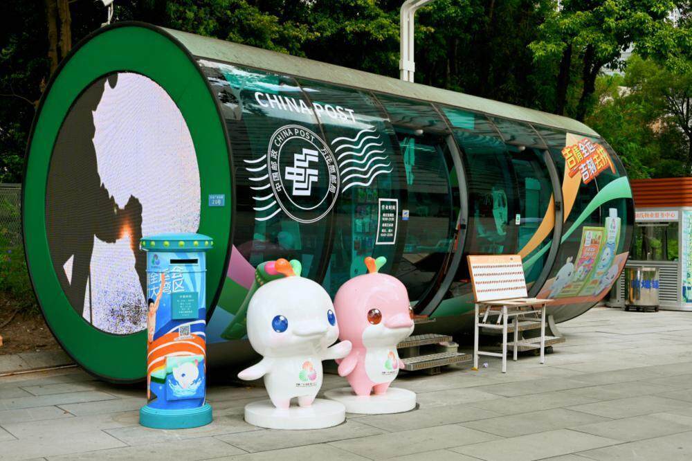 作为粤港澳联合承办的本届全运会的吉祥物,它们以中华白海豚为原型,头顶木棉红、紫荆紫、莲花绿水柱,暗藏三地融合深意。