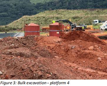 与此同时,项目方已正式启动金矿室平台建设。土方开挖已告一段落,回填与基础浇筑预计将在下周同步进入全面施工阶段。其他配套基础设施建设也在稳步推进,包括19项挡土墙扩建工程,目前已完成所有基础浇筑,并有五项扩建工程已竖向完工,其余部分预计将在未来两周内完成。